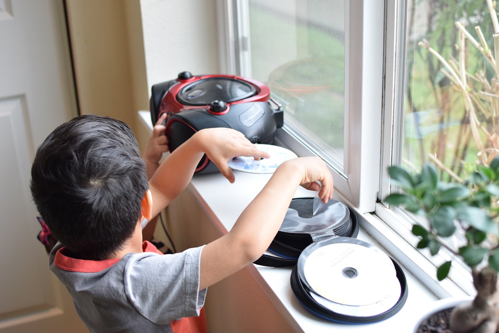 Hunter has his own portable CD player in his room with access to a little CD organizer. Inside we have the usual Raffi and some Lisa Loeb (!), but we also have several Spanish-language CDs we have purchased or received as gifts over the years. More recently we started borrowing foreign language music CDs from the children's section of the library. We have very much enjoyed several of the Putumayo Playground CDs. We have listened to one from Asia, another one from Australia, and another one from Europe. Next on our list is the one from Africa. I also really like one from Germany called "Kinderlieder Aus Deutschland und Europa." We've also borrowed a couple from the "Rough Guide to" series: "World Music for Children" and "World Playtime."